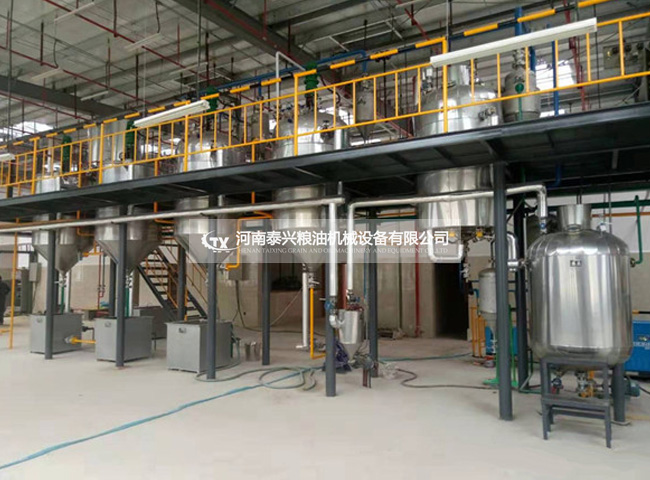 主要設(shè)備:離心機(jī)(或水洗鍋)、脫色塔、葉片過(guò)濾機(jī)、布袋過(guò)濾器、組合式脫酸脫臭塔、螺旋板換熱器、結(jié)晶罐、脫蠟過(guò)濾機(jī)等。