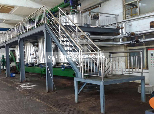 相對(duì)于老式敞口熬煉鍋,河南泰興糧油機(jī)械設(shè)備有限公司研發(fā)出的動(dòng)物油熬煉設(shè)備采用新型立式負(fù)壓熔煉鍋,以導(dǎo)熱油(或蒸汽)為熱媒,采用全密封式低溫負(fù)壓提煉方式,動(dòng)物油熬煉設(shè)備操作自動(dòng)化,生產(chǎn)連續(xù)化,節(jié)能環(huán)保,無(wú)惡臭氣味,環(huán)保達(dá)標(biāo)。在真空狀態(tài)下生產(chǎn)的油脂過(guò)氧化值低,酸價(jià)低,顏色好,香味濃,所創(chuàng)收的利潤(rùn)大。